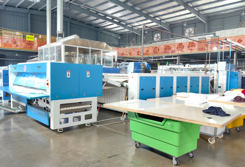 From fabric delivery machines and spreading machines to industrial ironing machines and folding machines, the full automation of linen finishing has been achieved. The unique sensing device of the spreading machine can automatically recognize the shape of the cloth and perform leveling pretreatment; The industrial ironing machine ensures the best ironing effect for different materials of linen through a precise temperature control system; The intelligent folding machine completes standardized folding according to a preset program, ensuring that each product maintains a professional level.